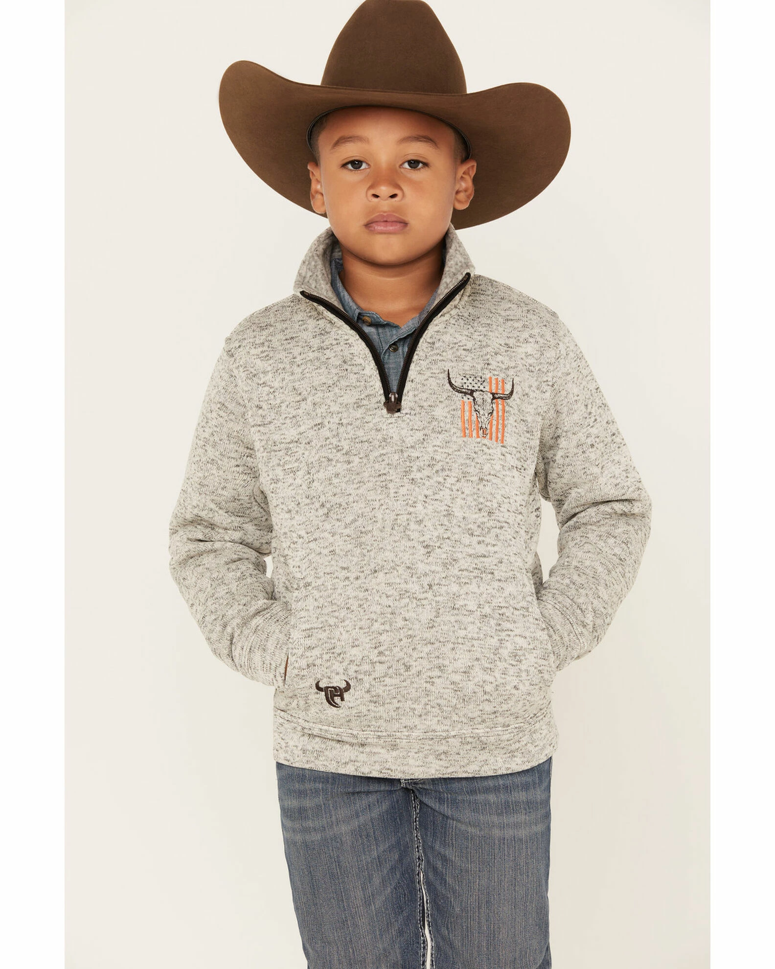 Be the first to review “Cowboy Hardware Boys’ Embroidered Flag Skull Quarter-Zip Sweatshirt Oatmeal” Cancel reply