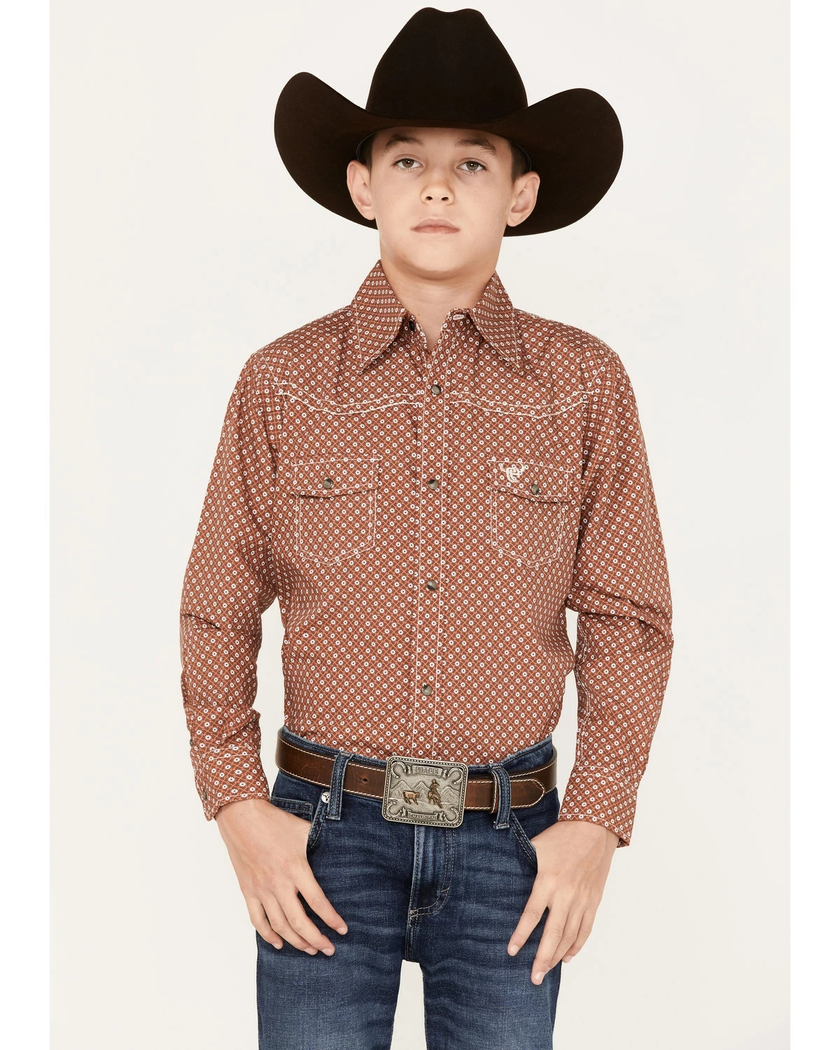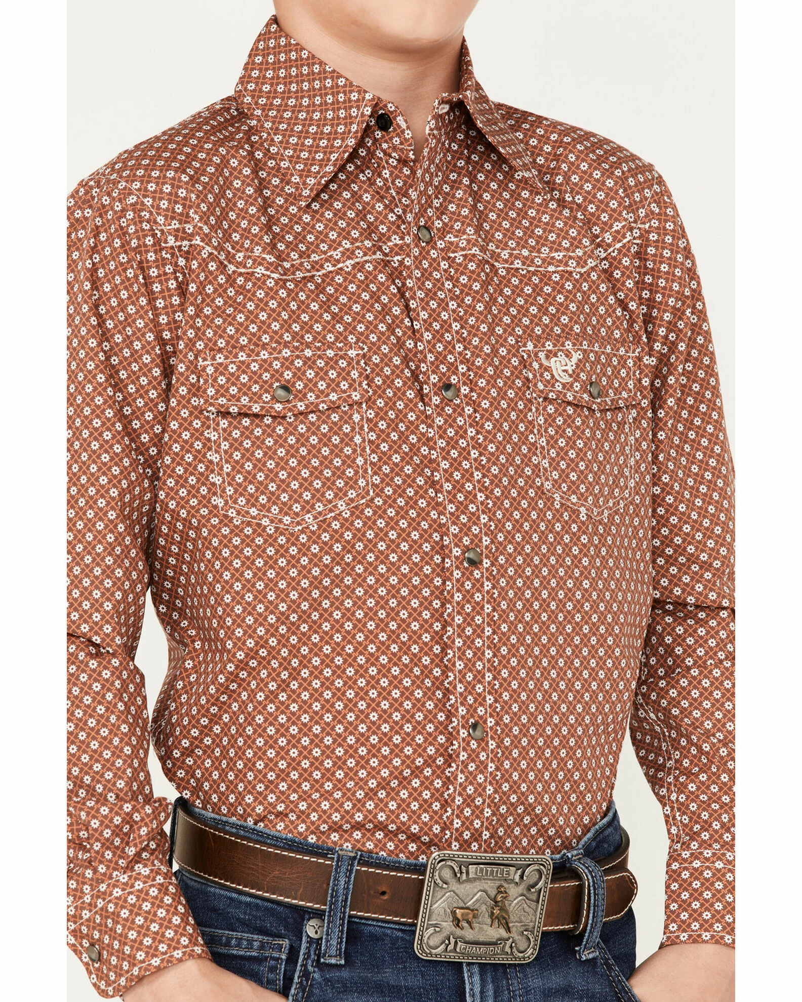 Be the first to review “Cowboy Hardware Boys’ Geo Print Long Sleeve Snap Western Shirt Rust Copper” Cancel reply