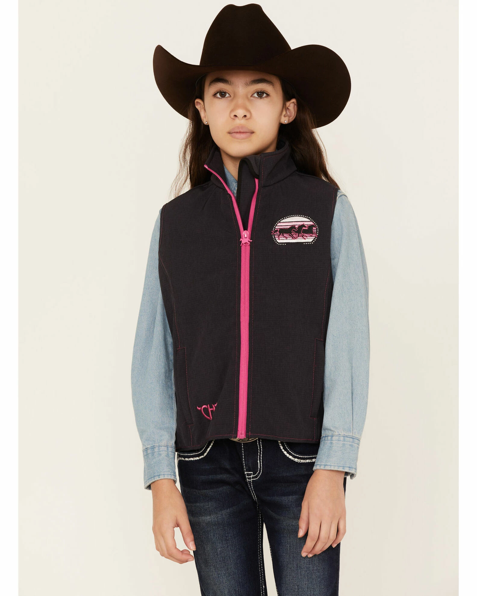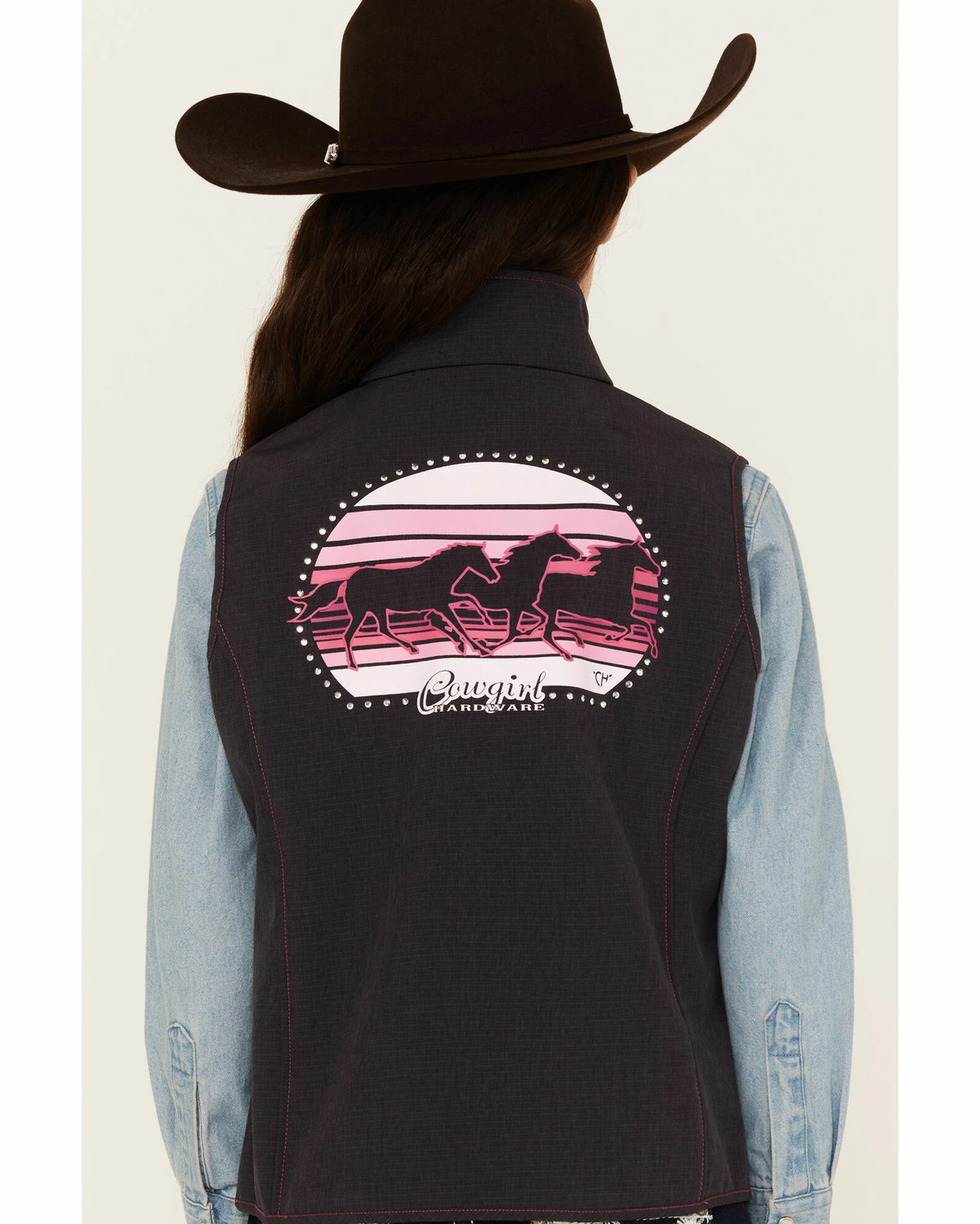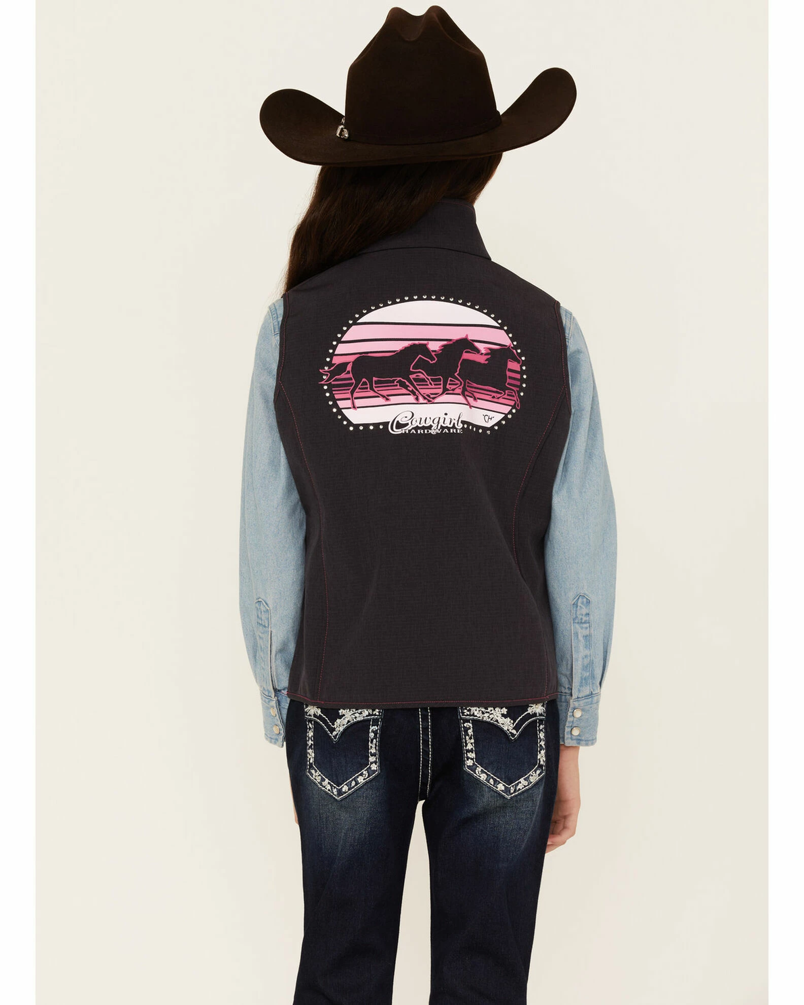 Be the first to review “Cowboy Hardware Girls’ Black Sunset Triple Horse Vest” Cancel reply