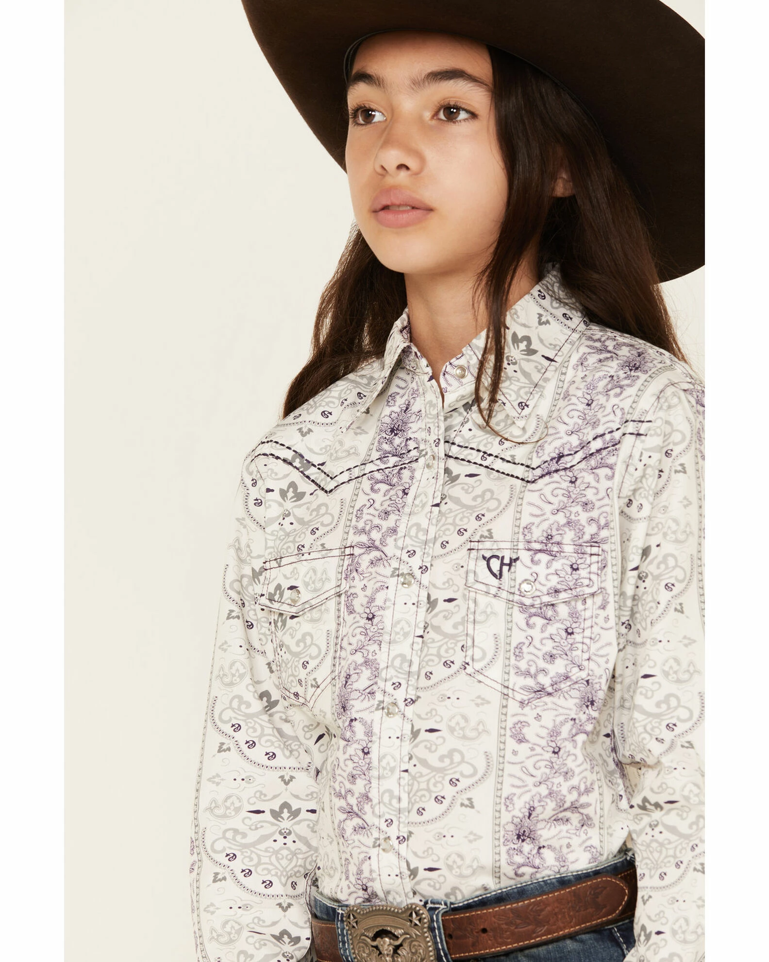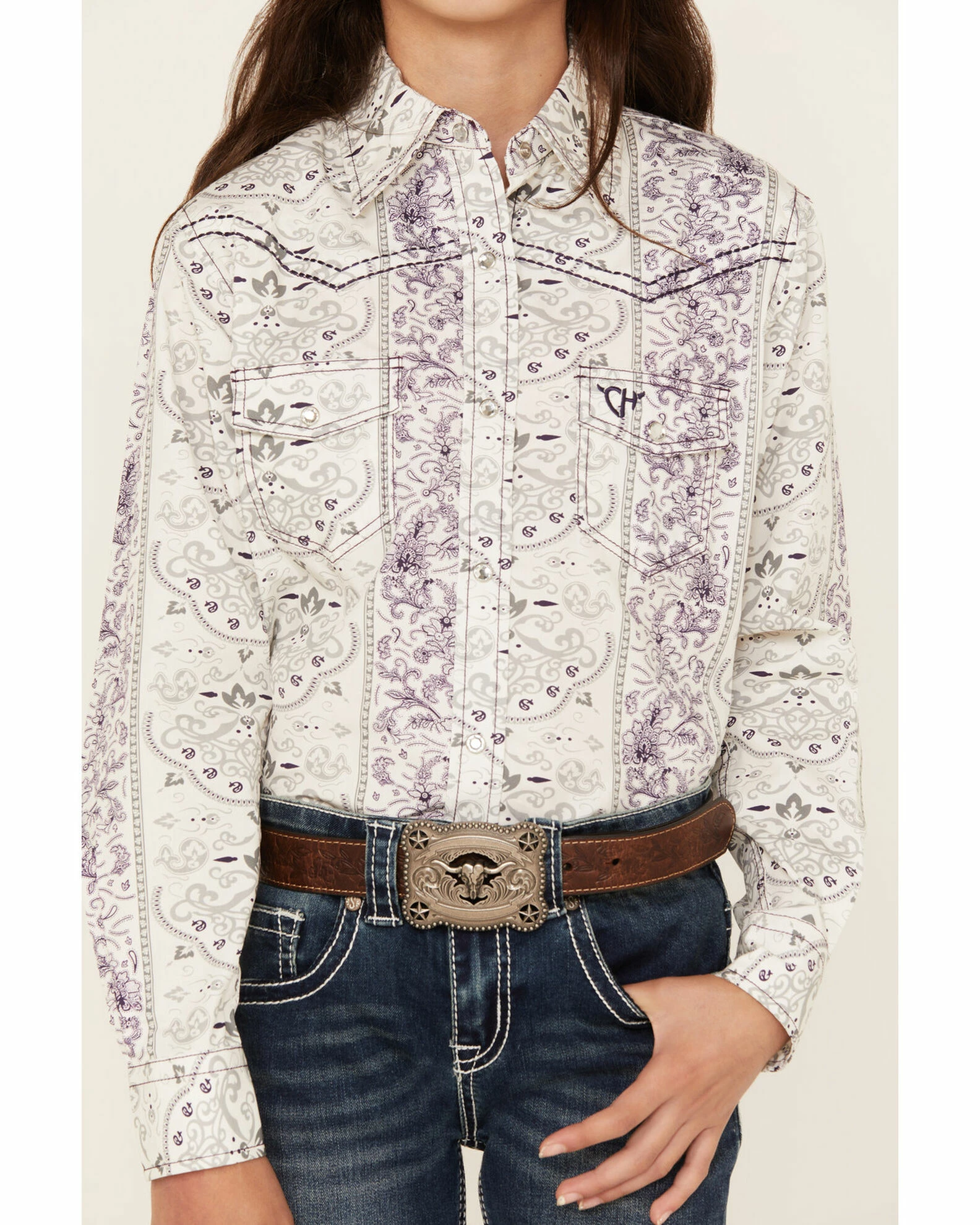 Be the first to review “Cowboy Hardware Girls’ Purple Floral Pattern Long Sleeve Snap Shirt” Cancel reply