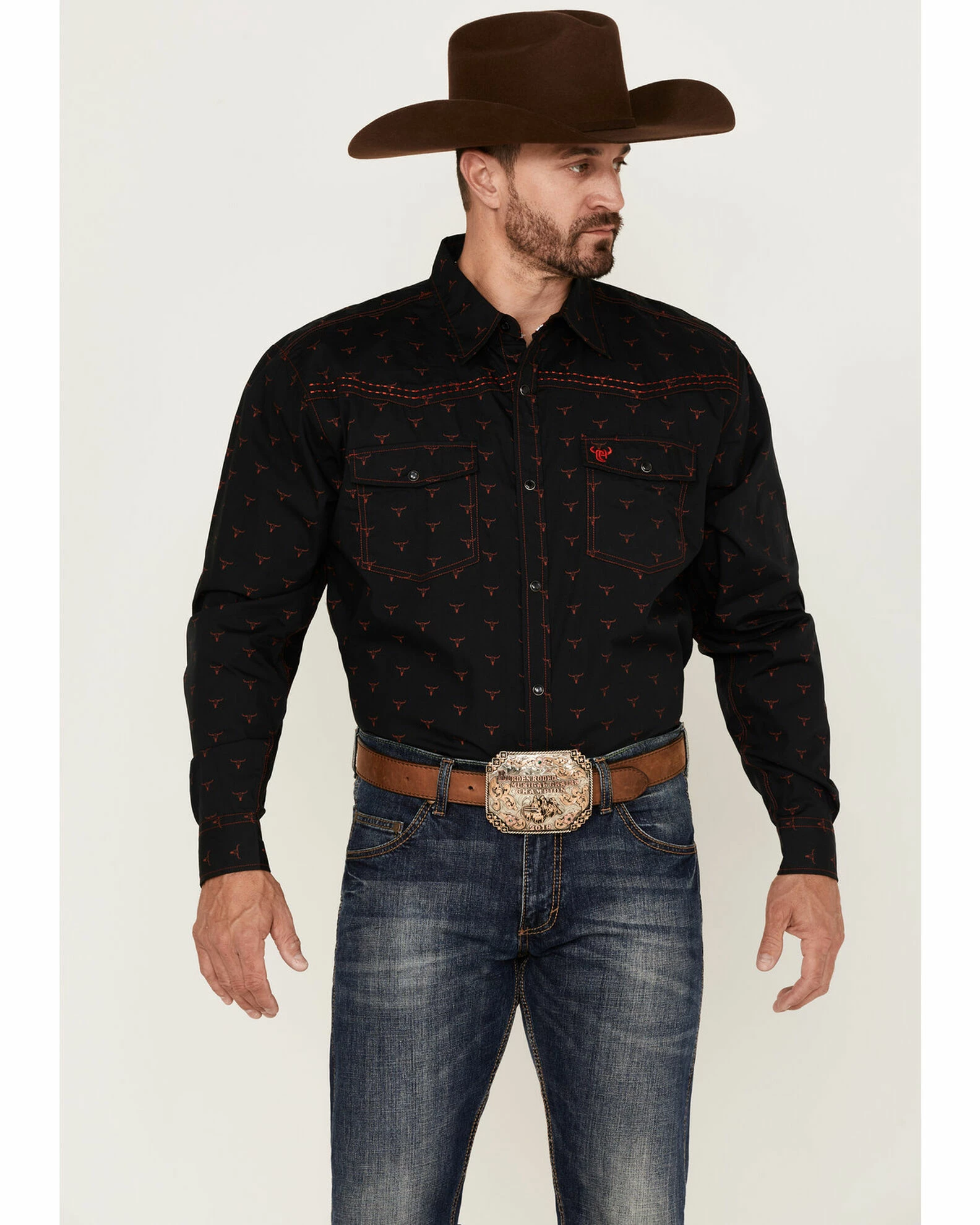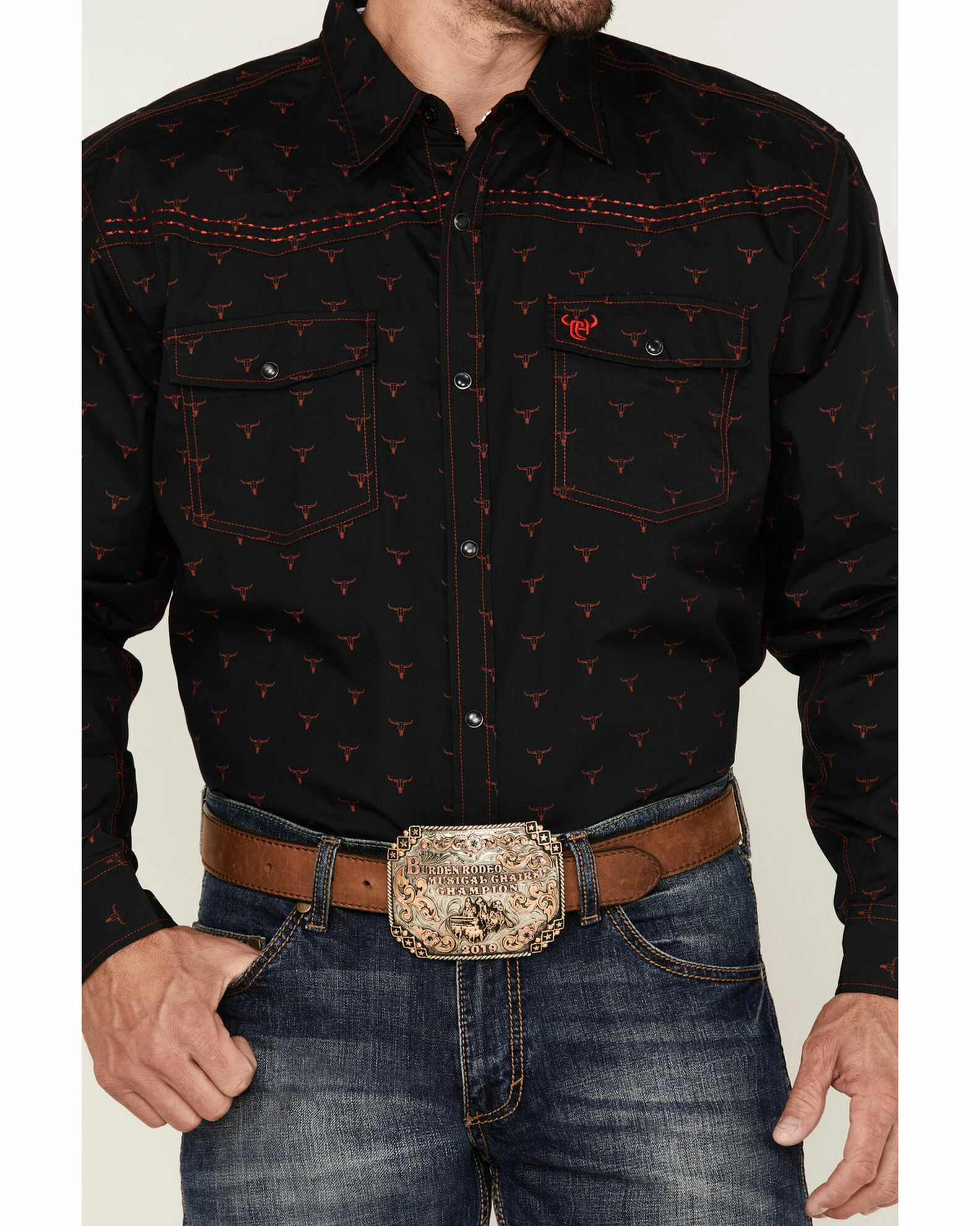 - Western front and back yokes with contrast stitching