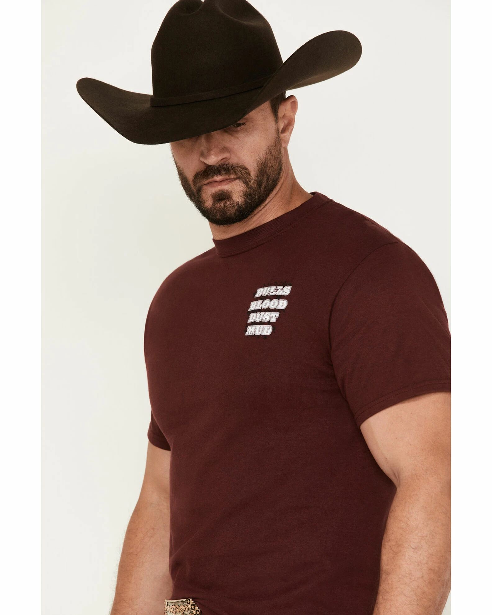 - “Bulls Blood Dust Mud” graphic on left chest