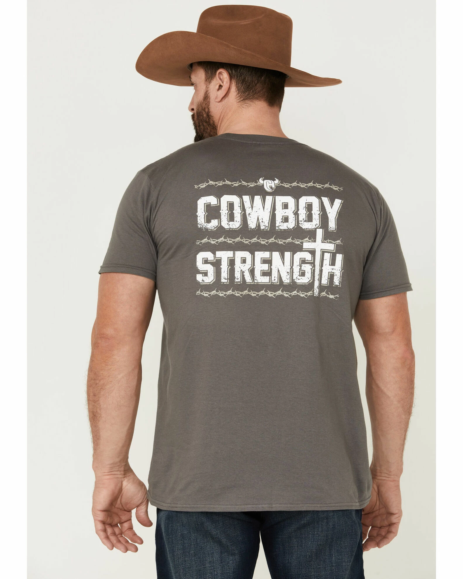 - “Cowboy Strength” with “CH” logo, cross, and barb wire graphic on left chest