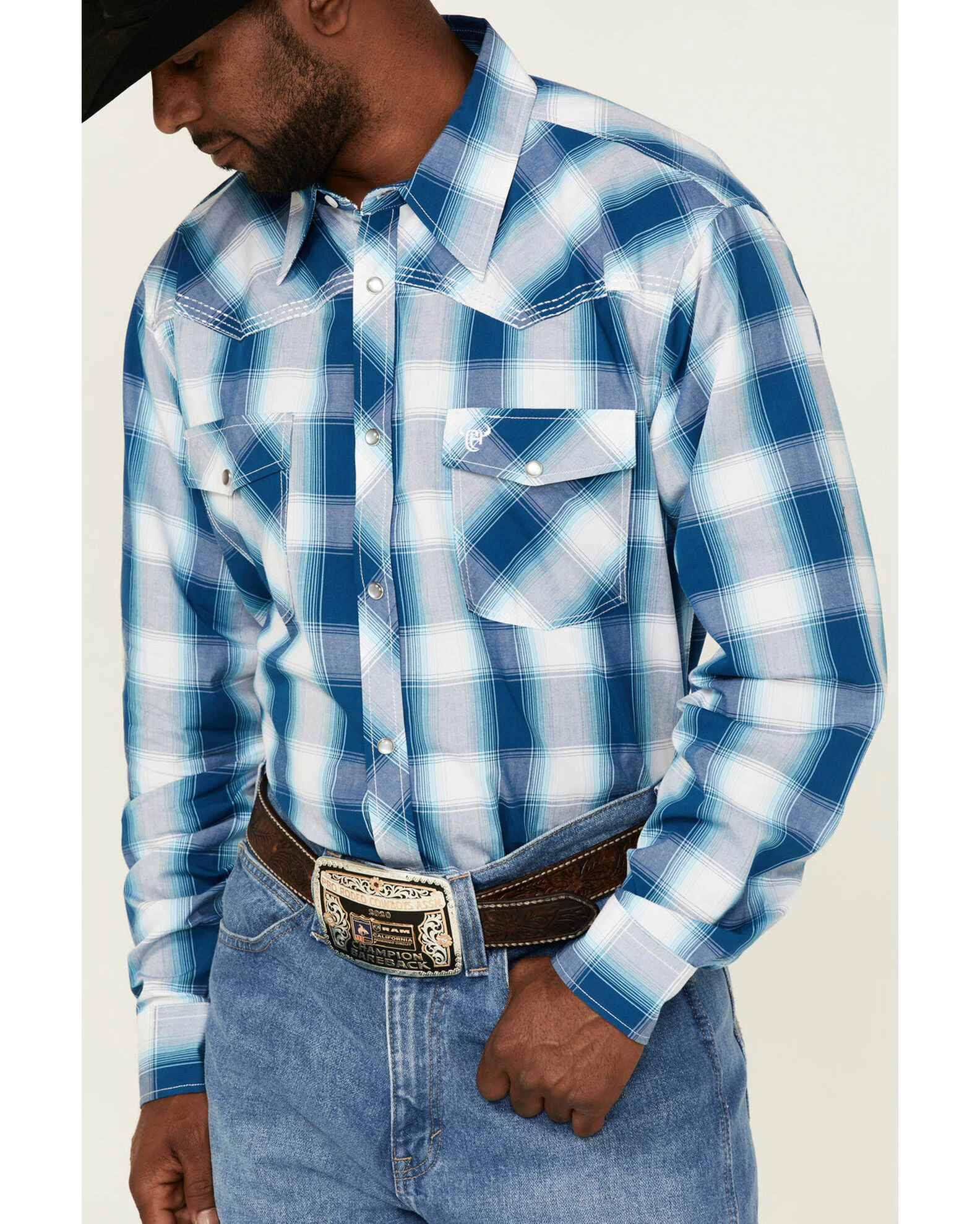 - Western front and back yokes with contrast stitching