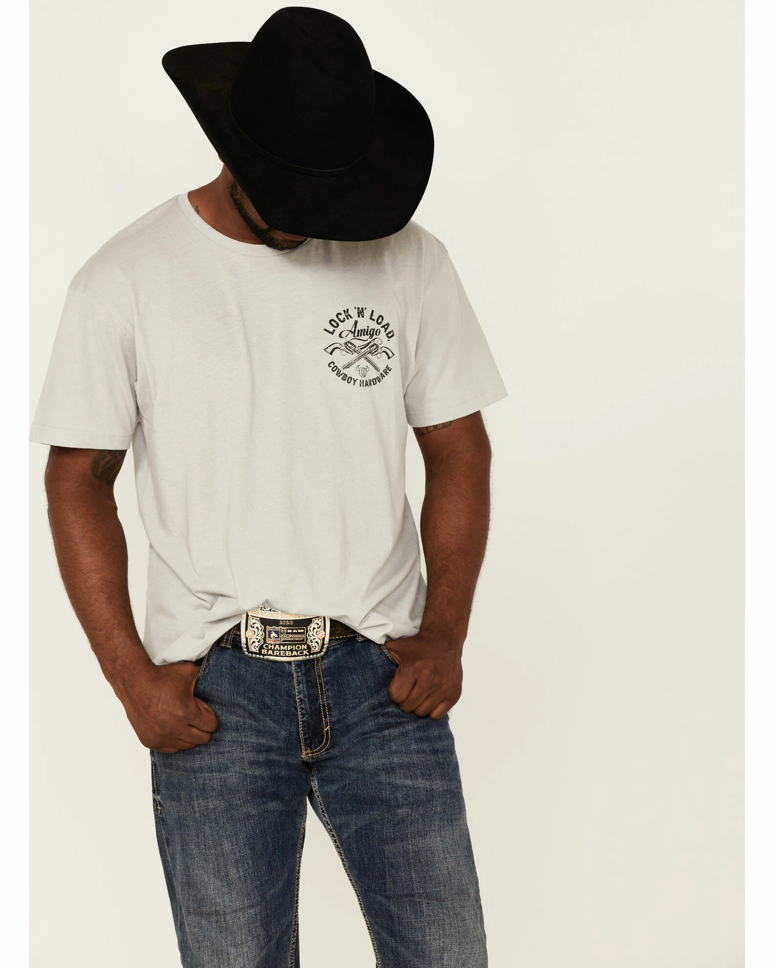 - Large “Cowboy Hardware Lock & Load Amigo” with dual revolvers graphic on back
