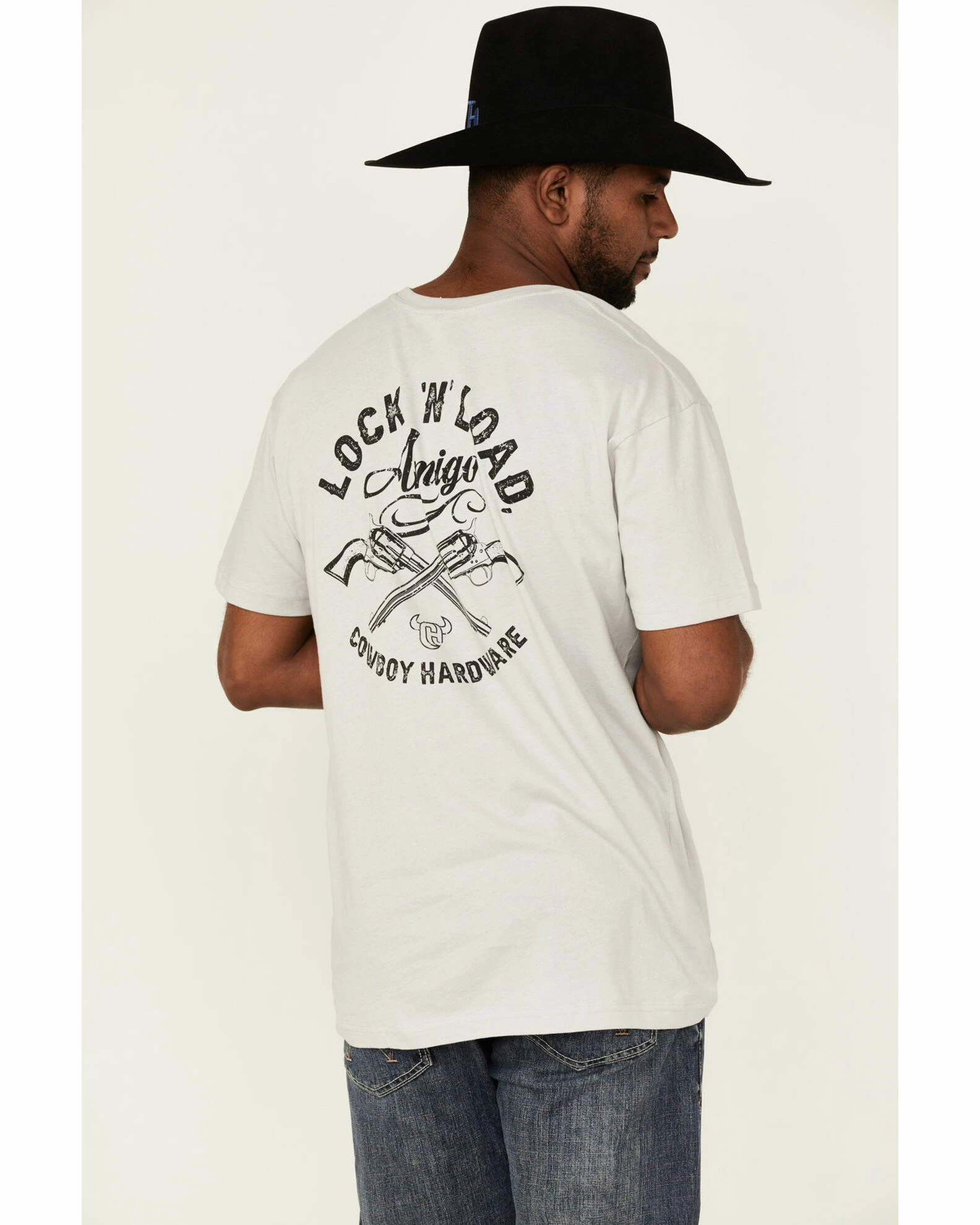 - “Cowboy Hardware Lock & Load Amigo” with dual revolvers graphic on left chest